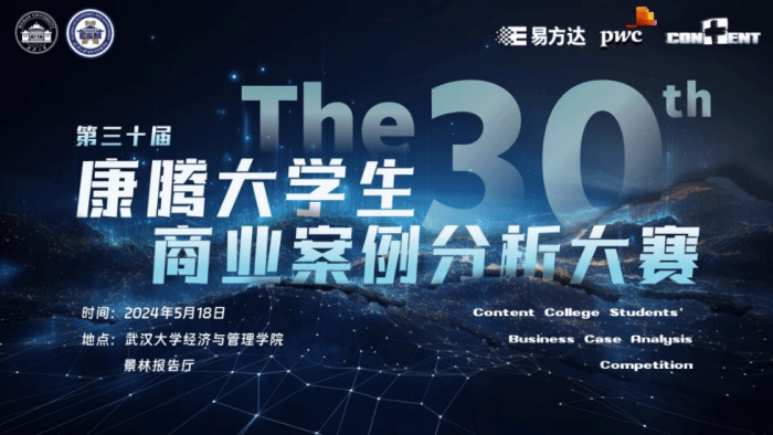 2024年5月18日下午,第三十届康腾大学生商业案例分析大赛决赛在999策略白菜手机论坛景林报告厅顺利进行。本届康腾商赛由999策略白菜官方网站、湖北省学生联合会主办,共青团999策略白菜官方网站委员会、999策略白菜手机论坛承办,999策略白菜手机论坛康腾实践中心(学生)执行,易方达基金管理有限公司、普华永道中天会计师事务所(特殊普通合伙)特别赞助,在Bilibili直播间进行全程线上直播,一千余名观众通过线上、线下方式观看比赛。