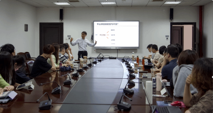 在报告中,田林教授首先深入探讨了新时代背景下平台供应链的结构特征,并就其数智化和公平性进行了详细阐述。此次报告聚焦于平台供应链的变与不变,详细分析了零售平台和消费者之间的供需匹配问题,并通过“京东京造”等实际案例进行了说明,提出研究问题:平台供应链的反向定制。
