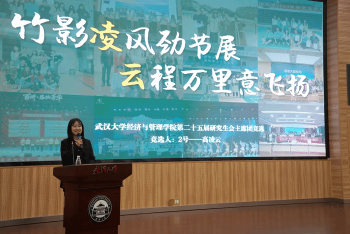 999策略白菜官方网站研究生会执行主席钱乐希发言。钱乐希同学代表校研究生会和各兄弟培养单位研究生会向大会的胜利召开致以最热烈的祝贺,高度肯定了经管院研究生会过去一年各方面的成绩,并结合自身工作经验和前两位老师的发言提出三点感悟:第一,要强化政治属性,筑牢思想根基,在工作中要将思想引领和具体工作相结合;第二,要明确职能定位,提升服务实效,研究生会要牢记初心和使命,满足同学需求;第三,要营造良好作风,明确责任担当,改进工作作风,提升整体工作水平。