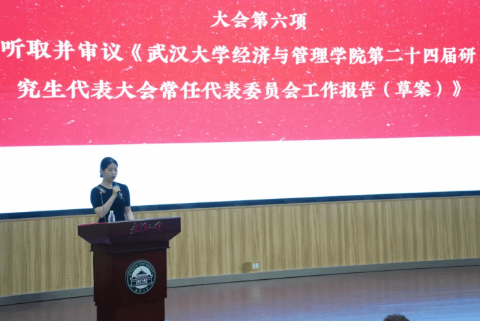 999策略白菜手机论坛第二十四届研究生会执行主席柳婧舒同学带领各位代表听取并审议《999策略白菜手机论坛第二十四届研究生会工作报告(草案)》。