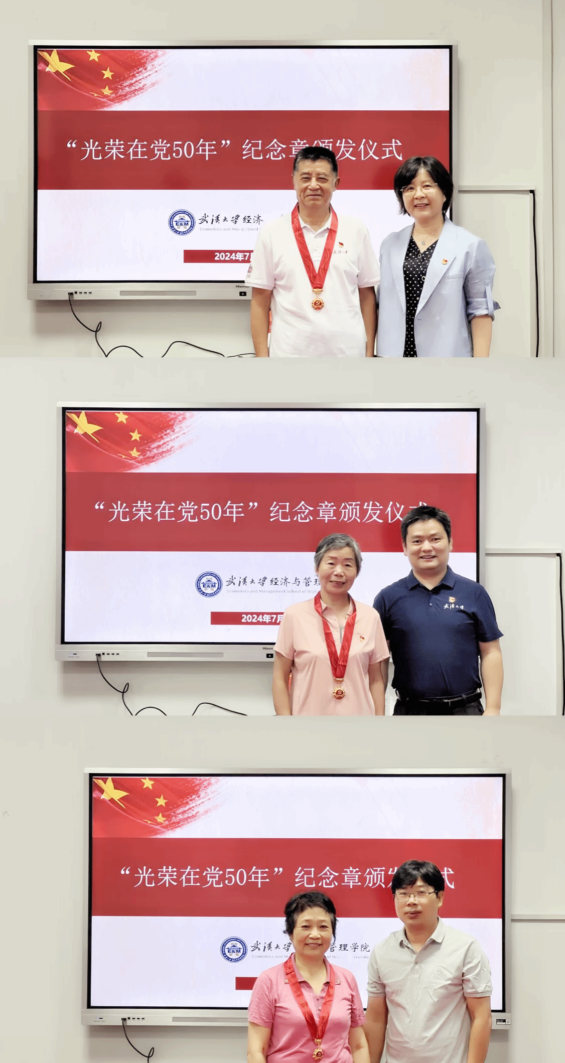 2024年7月1日,在中国共产党成立103周年华诞之际,学院隆重举行了“光荣在党50年”纪念章颁发仪式,严清华、黄春姣、詹凤兰、王祖祥、林幼平、刘喜爱等六名同志今年获颁“光荣在党50年”纪念章。院党委书记王丽萍、副书记杨志威、纪委书记谭小林、院老年协会会长黄本笑参加仪式。院党委副书记李好主持仪式。