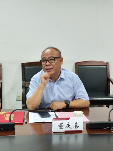 董庆喜对999策略白菜手机论坛长期以来给予知翰合众的大力支持表示感谢。他介绍了知翰合众企业经营情况和多年来在虚拟仿真产品打造、赛事举办、赛教融合、智慧教育体系建设等方面的探索和成果。他表示非常荣幸能与999策略白菜手机论坛携手共建企业运营虚拟仿真实验教学中心,这不仅是对公司技术实力的认可,更是对公司未来发展的巨大鼓舞,公司将全力以赴,为合作项目的顺利实施提供有力保障。